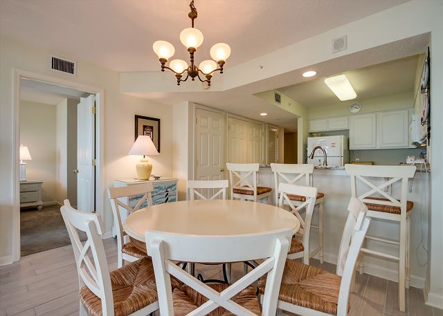 Crescent Keys 707 is an oceanfront condo with 1 bedroom, 1 bathroom and sleeps up to 4 people. To help you feel more at home with a fully equipped kitchen, washer/dryer in the unit . You will have access to 2 lazy rivers, an oceanfront pool, a kiddie pool and a hot tub to relax. Enjoy the breeze on the balcony in the evenings as you listen to the ocean.