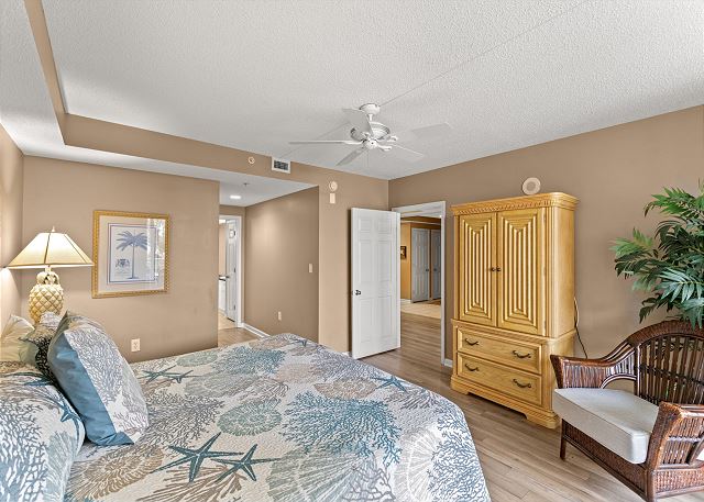 The North Tower of Barefoot Resort is located at 4801 Harbor Pointe Drive in North Myrtle Beach. Experience the ultimate in resort style living without the high priced resort fees. This unit has a fully equipped kitchen with granite countertops & modern appliances, washer & dryer, flat screen TV's in the living room and all 3 bedrooms, upscale decor and furnishings. The balcony overlooks the marina & yacht club and is a great place to sit and enjoy the passing boats as they sail down the Intracoastal Waterway.