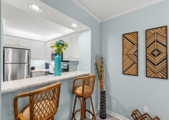 Ocean Creek Resort is a beautiful oceanfront community located on the north end of Myrtle Beach and is situated directly across from Barefoot Landing shopping and entertainment center. Located on 57-acres, this Myrtle Beach resort features 24-hour gated security, beautiful grounds perfect for biking and walking, multiple outdoor pools, an indoor pool, on-site dining, free parking, free Wi-Fi and more. Enjoy the outdoors at the on-site tennis court (additional charge), putting green, beach volleyball court and children's playground.