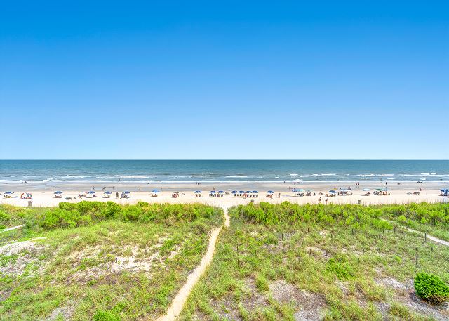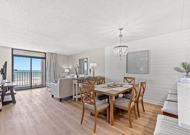 With 1400 square feet, this 4th floor corner unit will accommodate a large family in comfort! Enjoy the oceanfront balcony off of both the living room and the master bedroom. With the fully equipped kitchen you can have evening meals in after a long fun day on the beach and also for your convenience the unit provides you with 4 Roku Smart TV's, Free Wi-Fi and a washer/dryer!