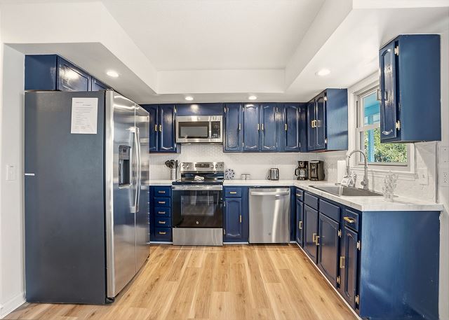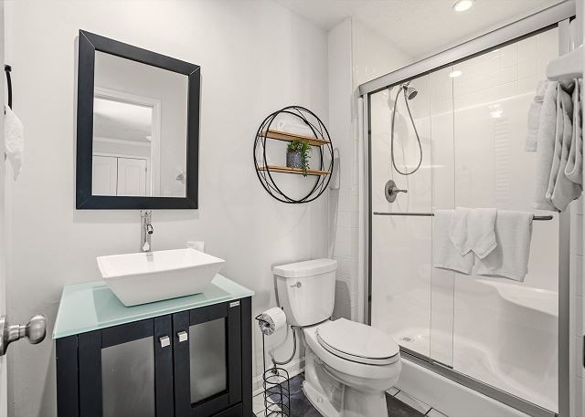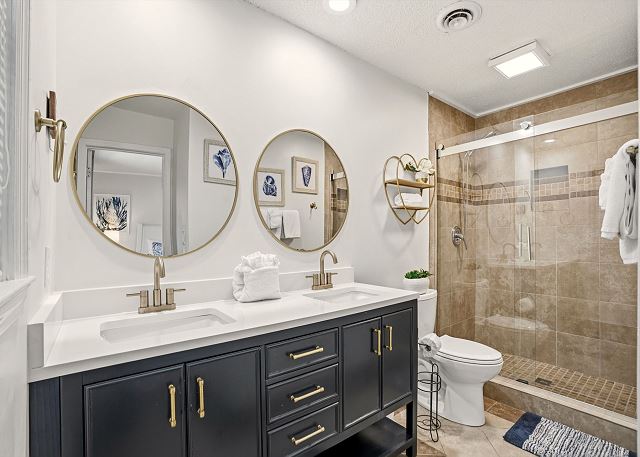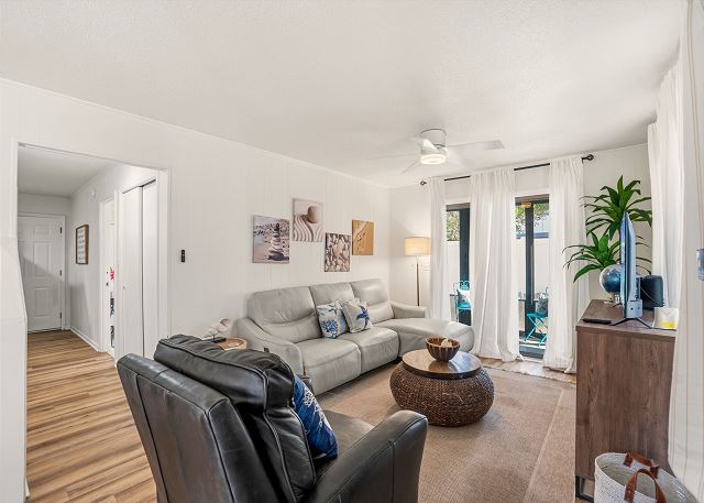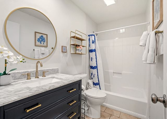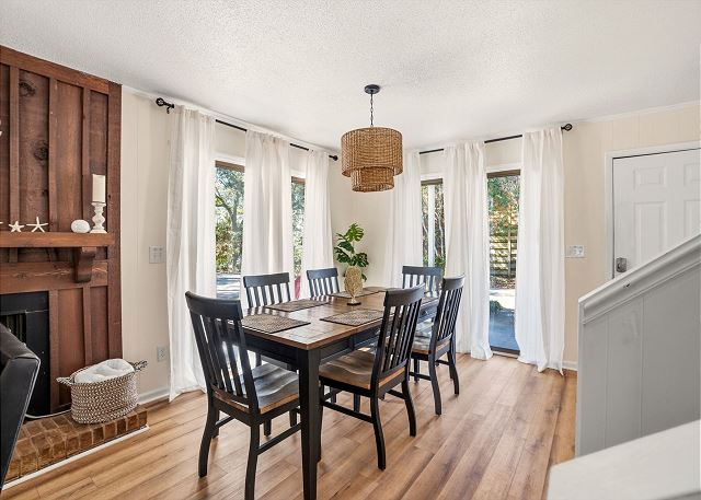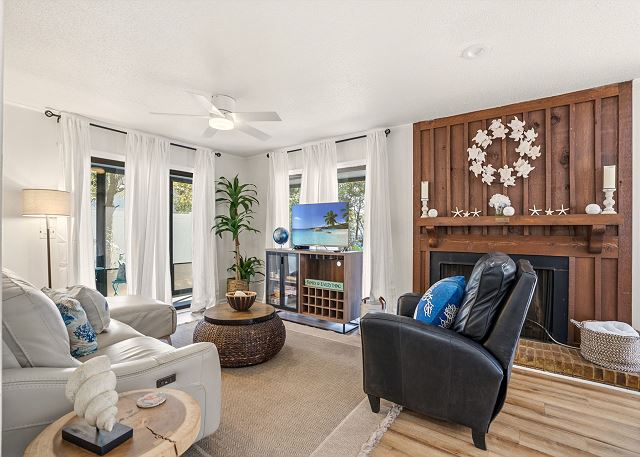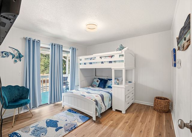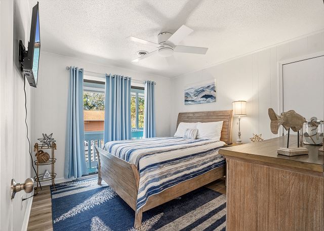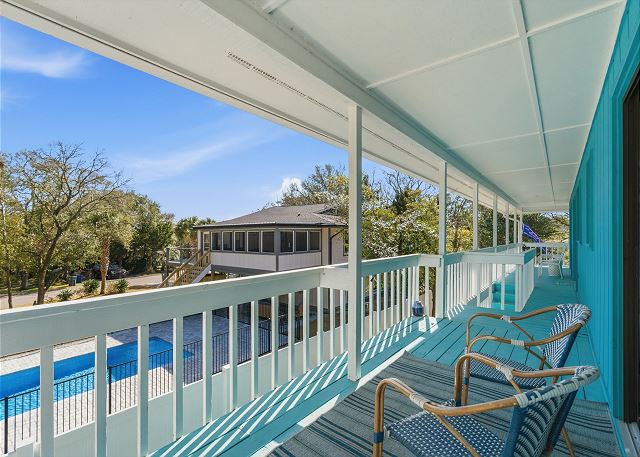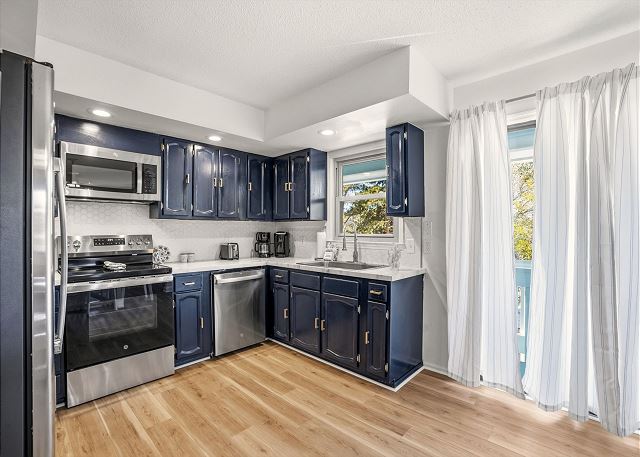 Enjoy all the comforts of home while you are at the beach in this wonderfully decorated beach house that offers 2 living rooms, 2 dining areas, 2 kitchens, 7 TV'S, a game room and bonus room off the pool. The ground level resembles a mother-in-law suite with 1 bedroom w/1 king bed, a full bathroom, full kitchen, dining area, living room and a screened in patio. From the kitchen, you have access to the 2 car garage which doubles as a game room with a basketball game, corn hole, and an arcade game. Off the garage is the bonus room which features indoor/outdoor furniture, a mini fridge, 1/2 bath, queen sized murphy bed and full sized washer & dryer. The 2nd floor offers the remaining 2 bedrooms, 2 bathrooms, full kitchen, dining area, living room with sleeper sofa & covered balcony with outdoor seating.