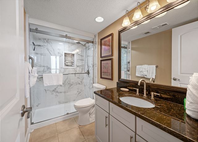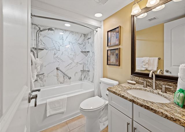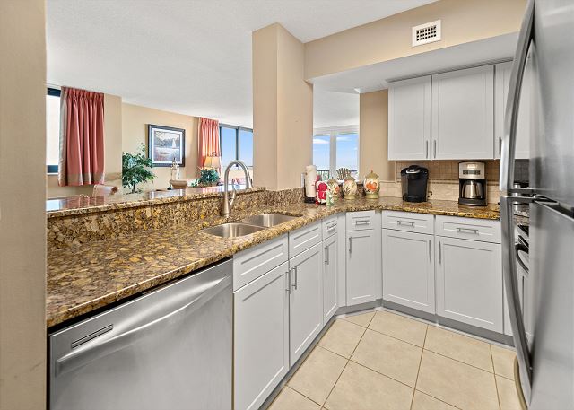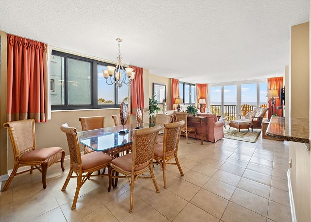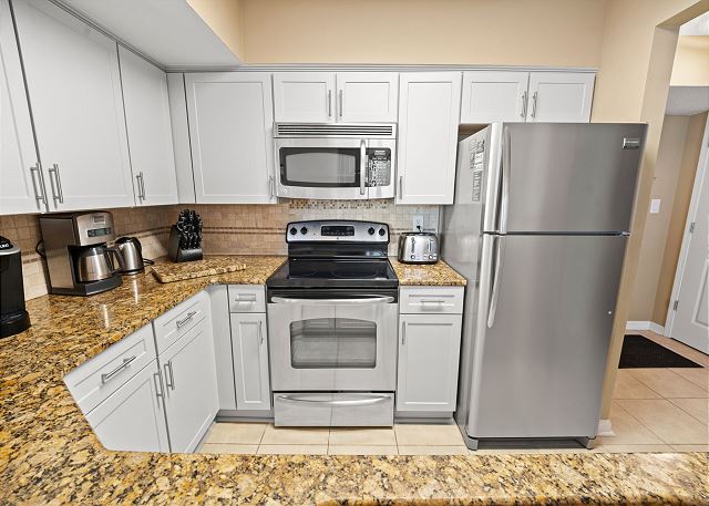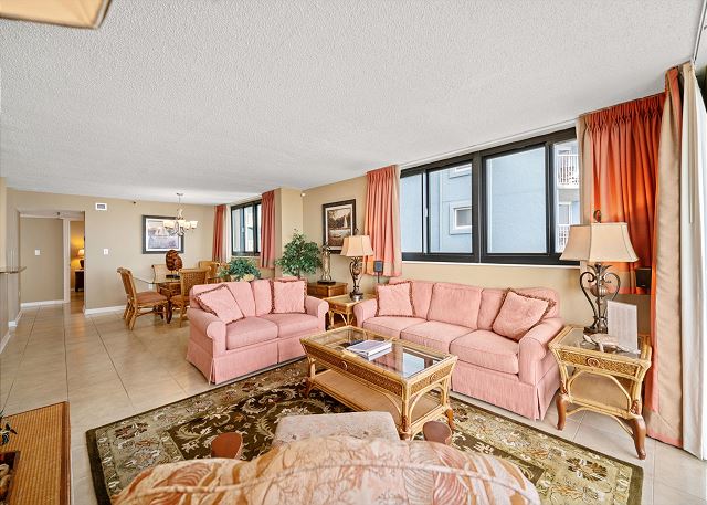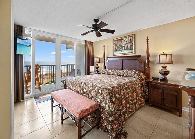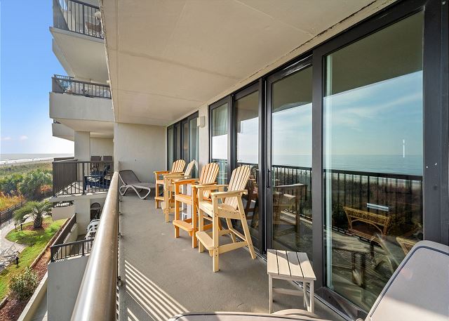 Relax on your spacious oceanfront balcony off the living room and master bedroom. This 2nd floor 3 bedroom, 2 bathroom oceanfront unit offers a fully equipped kitchen with granite countertops, a Keurig and 12 cup coffee maker, flat screen TV's in all bedrooms and living room, free Wi-Fi, a full size washer & dryer in unit and tile flooring throughout.